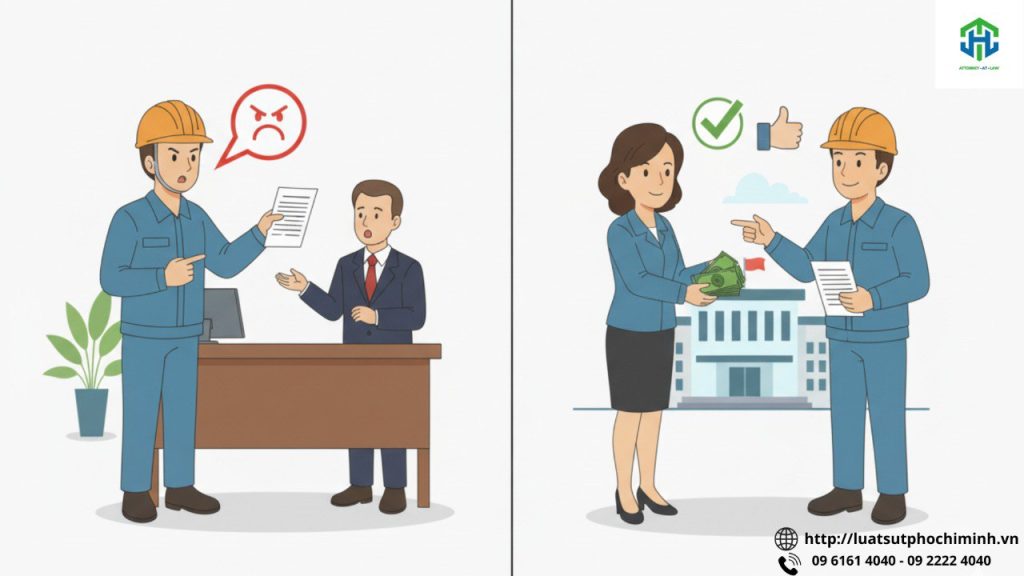 Trong quá trình đó, Công ty Luật TNHH HT Legal VN luôn sẵn sàng là đối tác pháp lý tin cậy đồng hành cùng người lao động và doanh nghiệp trong việc tư vấn, giải quyết tranh chấp và bảo vệ quyền lợi hợp pháp. Với đội ngũ luật sư và chuyên viên pháp lý giàu kinh nghiệm, HT Legal VN cam kết mang đến giải pháp pháp lý hiệu quả, minh bạch và bảo mật tuyệt đối thông tin khách hàng.