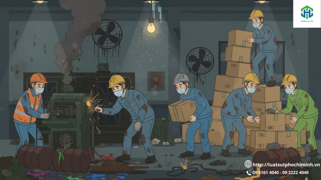 d. Môi trường làm việc không bảo đảm an toàn, vệ sinh lao động